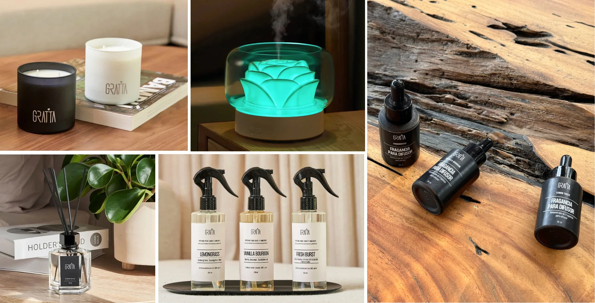 Cada fragancia tiene su propio carácter. Desde el frescor vibrante del Lemongrass hasta la calidez envolvente de la Vainilla Bourbon.