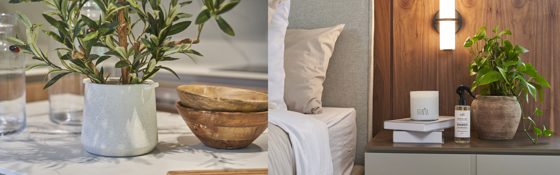 Creamos ambientes acogedores impregnados de bienestar, a través del uso de aromas cautivadoras y elementos de buen gusto.